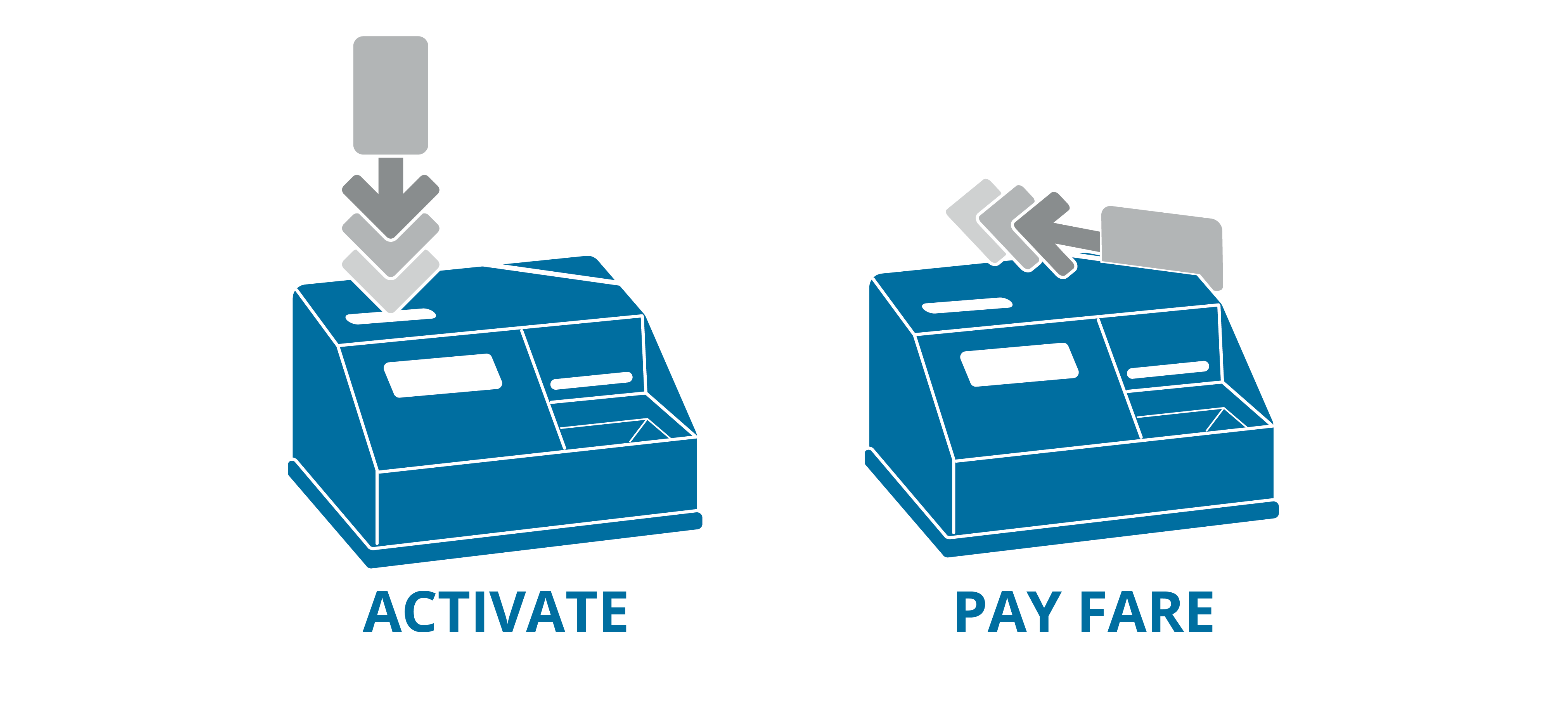 EFC-style paper passes with a magnetic strip on the back are activated at the farebox by inserting it into the vertical slot (see image below). After the pass is activated, slide the pass to pay fare (see image below).